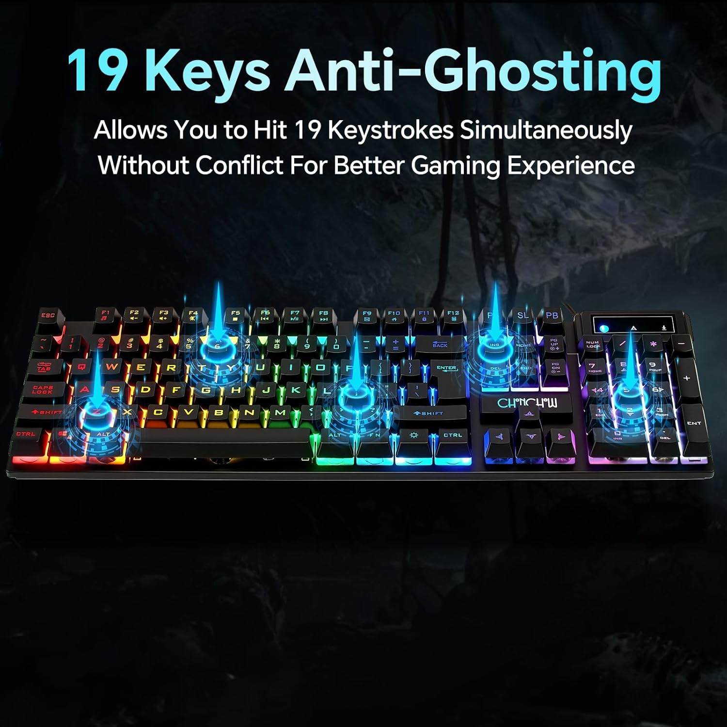 - 【PC Gaming Keyboard Mouse Combo】ALL-IN-ONE PC GAMER VALUE KIT, This gaming combo Includes CHONCHOW RGB Backlit Gaming Keyboard and RGB Backlit Gaming Mouse, Fantastic for Gamers